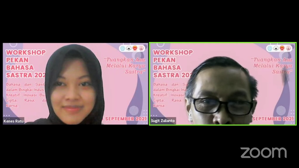 Dimoderatori oleh Kanes Ratu selaku mahasiswa Program Studi (Prodi) Pendidikan Bahasa dan Sastra Indonesia (PBSI), lokakarya ini menghadirkan dua pemateri yaitu Dr. Sugit Zulianto, M.Pd. dan Titi Setyoningsih, S.Pd., M.Pd. yang merupakan Dosen Prodi PBSI FKIP UNS.