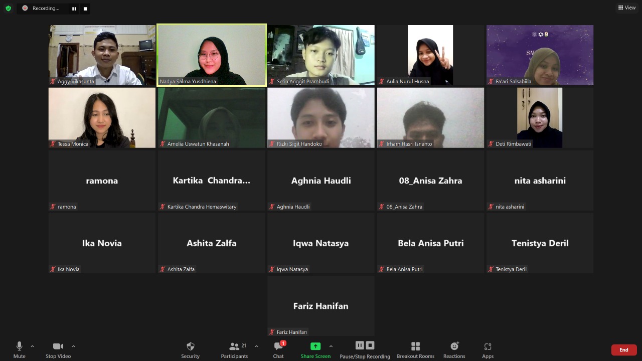 Dalam kegiatan ini, panitia menghadirkan Aggy Vikasunta, yakni Duta Kampus UNS tahun 2021 dari prodi Pendidikan Geografi 2021. Pembahasan yang disampaikan meliputi mekanisme Duta Kampus UNS dan berbagi pengalaman.